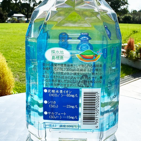 - 島根県金城の里で、数百年の歳月をかけて大自然のフィルターにろ過された弱アルカリ性、純天然アルカリイオン水です。